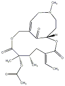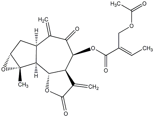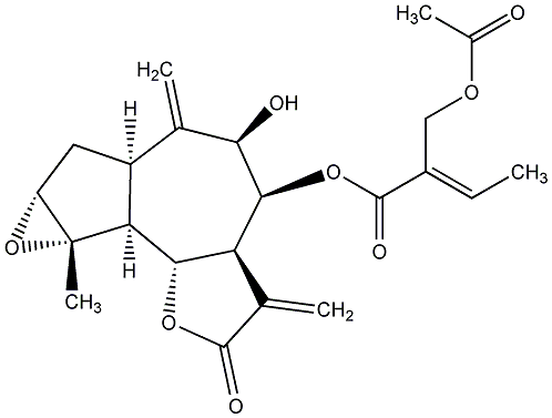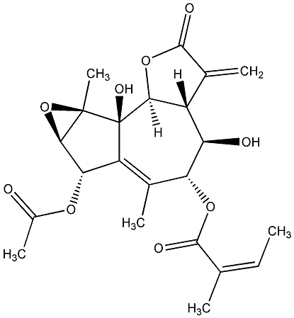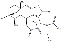 85.71 | C00012241 | [3aS-[3aR*,4R*(Z),5R*,6R*,9S*,10E,11aS*]]-5-(Acetyloxy)-2,3,3a,4,5,6,7,8,9,11a-decahydro-6,9-dihydroxy-6,10-dimethyl-3-methylene-2,7-dioxocyclodeca[b]furan-4-yl ester 2-methylbutenoic acid | ![]() |