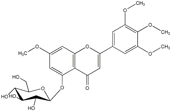 85.90 | C00013720 | Lethedoside B Tricetin 7,3',4',5'-trimethyl eter 5-glucoside 5-(beta-D-glucopyranosyloxy)-7-methoxy-2-(3,4,5-trimethoxyphenyl)-4H-1-benzopyran-4-one |