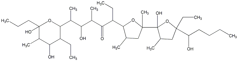 82.18 | C00016661 | Inostamycin C (2S,4S,5R)-3-de(carboxymethyl)-20-de(1-hydroxypropyl)-6-demethyl-6-ethyl-5-hydroxy-20-(1-hydroxypentyl)-2-methyl-3-propyl-lysocellin |