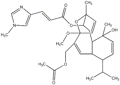 79.71 | C00012164 | [3aS-(3aR*,4R*,5S*,6S*,10Z,11aS*)]-2,3,3a,4,5,6,7,11a-Octahydro-10-(hydroxymethyl)-6-methyl-3-methylene-4-[(2-methyl-1-oxo-2-propenyl)oxy]-2,7-dioxo-6,9-epoxycyclodeca[b]furan-5-yl ester 3-methylbutanoic acid | ![]() |