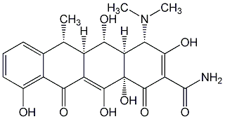 80.88 | C00017127 | alpha-6-Deoxyoxytetracycline alpha-Doxycycline 6-Deoxyoxytetracycline Dentistar Deoxymykoin Doxinyl Doxivetin Doxycen Doxycycline Doxytetracycline GS 3065 Hydramycin Liviatin Medeomycin Monodox Pulmodox Ronaxan Tolexine Unidox Vibramycin Vibramycine Vibranos SF Vibraveineuse Vibravenos |