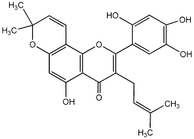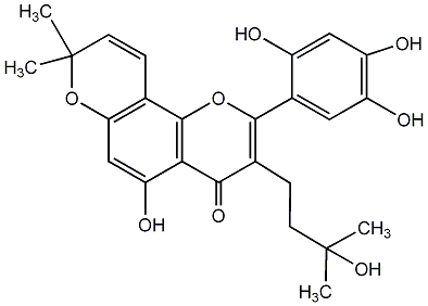 85.07 | C00013538 | Broussonol A 8-(1,1-Dimethyl-2-propenyl)-3,5,7-trihydroxy-2-(8-hydroxy-2,2-dimethyl-2H-1-benzopyran-6-yl)-4H-1-benzopyran-4-one |