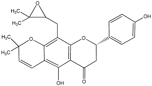 83.33 | C00014249 | 2''',3'''-Epoxylupinifolin 2'',3''-Epoxylupinifolin (2S)-5,4'-Dihydroxy-8-(2,3-epoxy-3-methylbutyl)-6'',6''-dimethylpyrano[2'',3'':7,6]flavanone |