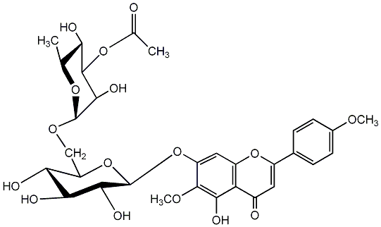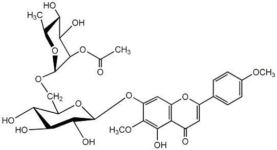 93.00 | C00004210 | Acacetin 7-(4'''-acetylrutinoside) Linarin monoacetate 7-[[6-O-(4-O-acetyl-6-deoxy-alpha-L-mannopyranosyl)-beta-D-glucopyranosyl]oxy]-5-hydroxy-2-(4-methoxyphenyl)-4H-1-benzopyran-4-one |