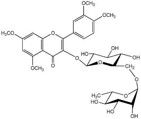 92.86 | C00005625 | Quercetin 5,7,3',4'-tetramethyl ether 3-rutinoside | ![]() |
