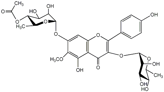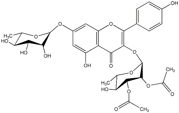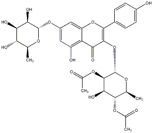 | C00013790 | Kaempferol 3-(2'',3''-diacetylrhamnoside)-7-rhamnoside Crassirhizomoside C 7-[(6-Deoxy-alpha-L-mannopyranosyl)oxy]-3-[(2,3-di-O-acetyl-6-deoxy-alpha-L-mannopyranosyl)oxy]-5-hydroxy-2-(4-hydroxyphenyl)-4H-1-benzopyran-4-one |