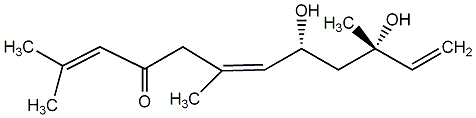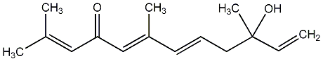 91.18 | C00011395 | (E,E)-(-)-10-hydroxy-2,6,10-trimethyl-2,5,7,11-Dodecatetraen-4-one | ![]() |