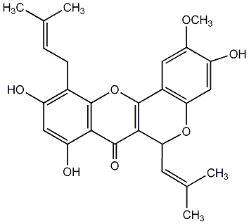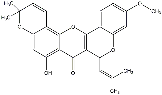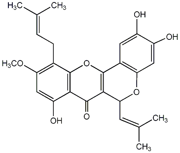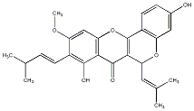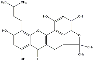 | C00004099 | Isocyclomulberrin (+)-3,8,10-Trihydroxy-9-(3-methyl-2-butenyl)-6-(2-methyl-1-propenyl)-6H,7H-[1]benzopyrano[4,3-b][1]benzopyran-7-one |