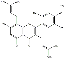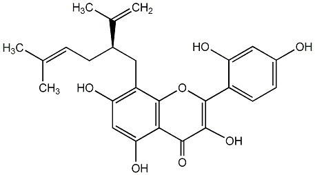 92.31 | C00013517 | 3,5,7-Trihydroxy-2-(4-hydroxyphenyl)-6,8-bis(3-methyl-2-butenyl)-4H-1-benzopyran-4-one | ![]() |