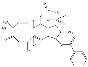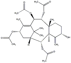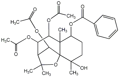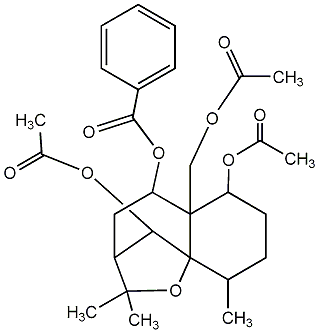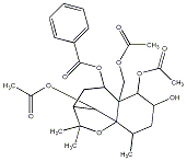 84.62 | C00013170 | [3R-(3alpha,4beta,5alpha,5aalpha,6alpha,9beta,9aalpha,10R*)]-Octahydro-2,2,5a,9-tetramethyl-, 5,10-diacetate 6-benzoate H-3,9a-methano-1-benzoxepin-4,5,6,9,10-pentol | ![]() |