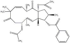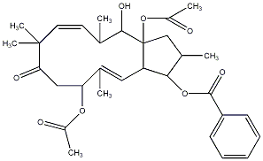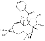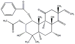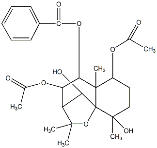 84.88 | C00013173 | [3R-(3alpha,5beta,5aalpha,6alpha,9beta,9aalpha,10R*)]-5a-[(Acetyloxy)methyl]octahydro-2,2,9-trimethyl-2H-3,9a-methano-1-benzoxepin-5,6,9,10-tetrol 5,10-diacetate 6-benzoate | ![]() |