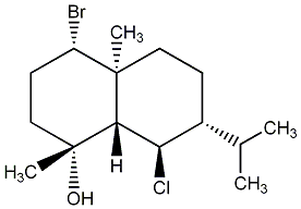 86.49 | C00012685 | Heterocladol [1R-(1a,4alpha,4aalpha,7alpha,8beta,8abeta)]-4-Bromo-8-chlorodecahydro-1,4a-dimethyl-7-(1-methylethyl)-1-naphthalenol |