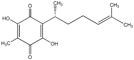84.62 | C00011685 | Perezone (R)-2-(1,5-Dimethyl-4-hexenyl)-3-hydroxy-5-methyl-2,5-cyclohexadiene-1,4-dione |
