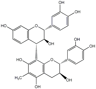 76.77 | C00013274 | Butiniflavan-(4beta->8)-epicatechin (2S,2'R,3'R,4R)-2,2'-bis(3,4-Dihydroxyphenyl)-3,3',4,4'-tetrahydro-[4,8'-bi-2H-1-benzopyran]-3',5',7,7'-tetrol |