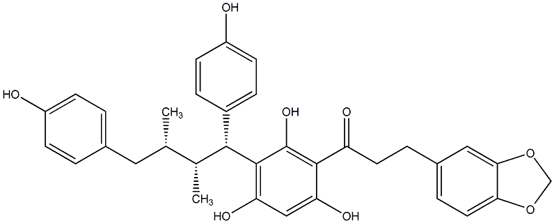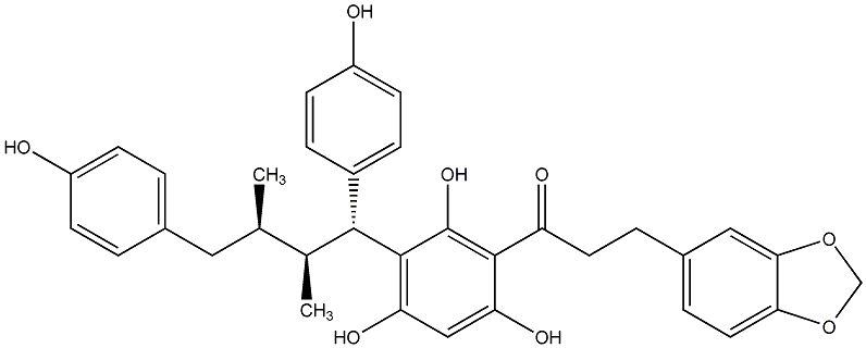 80.81 | C00014645 | Iryantherin I rel-3-(1,3-Benzodioxol-5-yl)-1-[3-[(1R,2R,3S)-1,4-bis(4-hydroxyphenyl)-2,3-dimethylbutyl]-2,4,6-trihydroxyphenyl]-1-propanone |