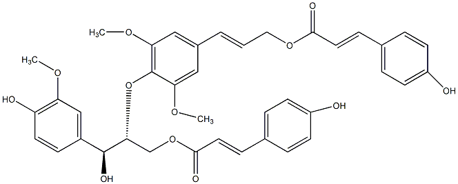 85.45 | C00013679 | Chrysoeriol 7-(3'',6''-di-(E)-p-coumaroylglucoside) 7-[[3,6-Bis-O-[(2E)-3-(4-hydroxyphenyl)-1-oxo-2-propenyl]-beta-D-glucopyranosyl]oxy]-5-hydroxy-2-(4-hydroxy-3-methoxyphenyl)-4H-1-benzopyran-4-one |