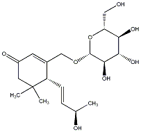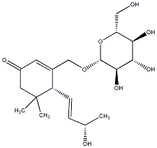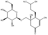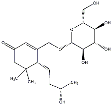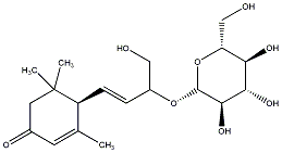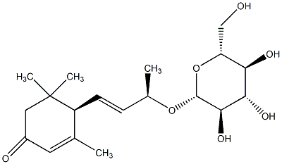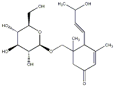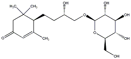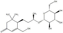 | C00029328 | (6R,9S)-3-oxo-alpha-ionol-beta-D-glucopyranoside (6R,7E,9S)-9-Hydroxymegastigma-4,7-dien-3-one 9-O-beta-D-glucopyranoside |