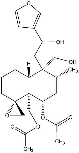 88.41 | C00022542 | 6beta-Angeloyloxy-10beta-hydroxy-3alpha,4alpha,15,16-bisepoxy-8betaH-cleroda-13(16),14-diene-20,12-olide | ![]() |