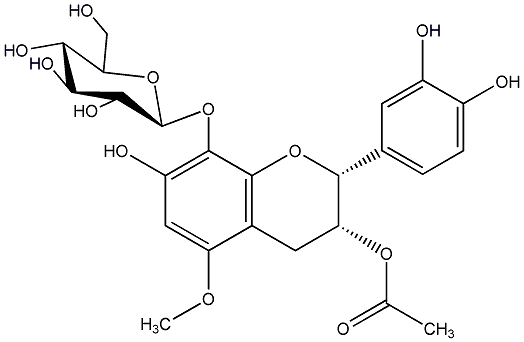 89.61 | C00013253 | Barbatoflavan (2R,3R)-3-(Acetyloxy)-2-(3,4-dihydroxyphenyl)-3,4-dihydro-7-hydroxy-5-methoxy-2H-1-benzopyran-8-yl beta-D-Glucopyranoside |