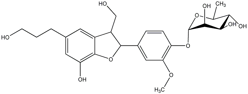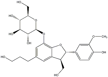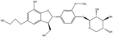 100.00 | C00000631 | 3-(beta-D-Glucopyranosyloxymethyl)-2-(4-hydroxy-3-methoxyphenyl)-5-(3-hydroxypropyl)-7-methoxy-(2R,3S)-dihydrobenzofuran trans-Dihydrodehydrodiconiferyl alcohol-9-O-beta-D-glucoside |