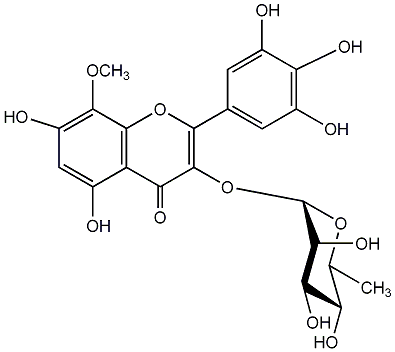 89.33 | C00013982 | Myricetin 3',4'-dimethyl ether 3-rhamnoside 3-[(6-Deoxy-alpha-L-mannopyranosyl)oxy]-5,7-dihydroxy-2-(3-hydroxy-4,5-dimethoxyphenyl)-4H-1-benzopyran-4-one |
