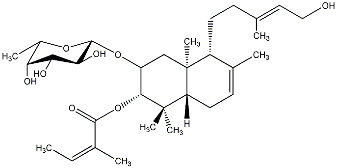86.25 | C00023192 | 3alpha-Angeloyloxy-2beta,15-dihydroxy-ent-labda-7,13E-dien-2-O-beta-fucopyranoside | ![]() |