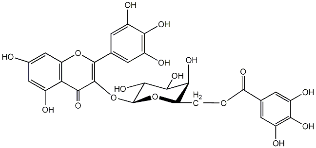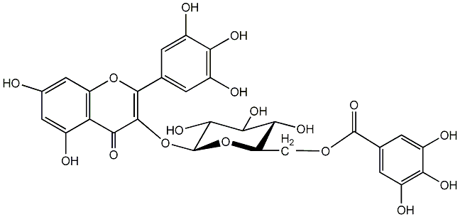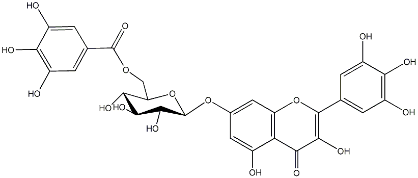 87.37 | C00013867 | Quercetin 7-(6''-galloylglucoside) 2-(3,4-Dihydroxyphenyl)-3,5-dihydroxy-7-[[6-O-(3,4,5-trihydroxybenzoyl)-beta-D-glucopyranosyl]oxy]-4H-1-benzopyran-4-one |