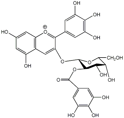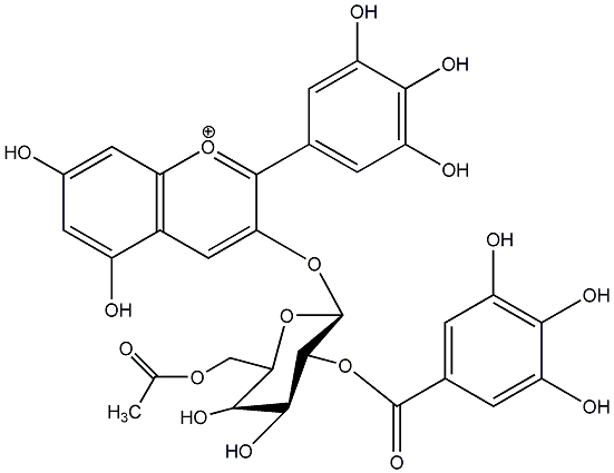 88.42 | C00014788 | Delphinidin 3-O-(2''-O-galloyl-6''-O-acetyl-beta-galactopyranoside) | ![]() |