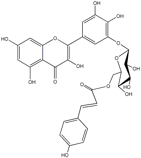 87.50 | C00013863 | Quercetin 3-(6''-feruloylgalactoside) 2-(3,4-Dihydroxyphenyl)-5,7-dihydroxy-3-[[6-O-[(2E)-3-(4-hydroxy-3-methoxyphenyl)-1-oxo-2-propenyl]-beta-D-galactopyranosyl]oxy]-4H-1-benzopyran-4-one Quercetin 3-O-(6''-feruloyl)-beta-D-galactopyranoside |