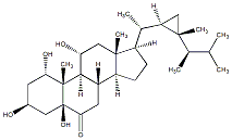 90.54 | C00042060 | 1alpha,3beta,5beta,11alpha-Tetrahydroxygorgostan-6-one (-)-1alpha,3beta,5beta,11alpha-Tetrahydroxygorgostan-6-one |