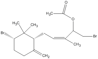 80.95 | C00012536 | [1S-(1alpha,2beta,5alpha)]-4-Bromo-5-(1,2-dimethylbicyclo[3.1.0]hex-2-yl)-2-methylphenol acetate Cyclolaurenol acetate |