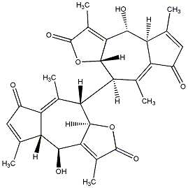 82.28 | C00012948 | Rudbeckiolide [3aR-[3aalpha,4abeta,7beta,9aalpha,10R*(3'aR*,5'S*,8'aR*,9'aR*)]]-3a,3'a,5',6',7,7',8',8'a,9,9',9a,9'a-Dodecahydro-5,5',8,8'a-tetramethyl-3-methylenespiro[4H-4a,7-ethanoazuleno[6,5-b]furan-10,3'(2'H)-naphtho[2,3-b]furan]-2,2'(3H)-dione |