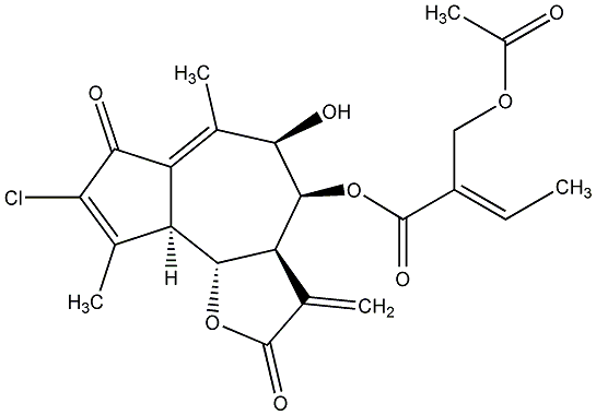 90.77 | C00020530 | 3-Chloro-9beta-hydroxy-8beta-(5-acetoxy-tiglinoyloxy)-dehydroleucodin | ![]() |