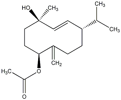 77.50 | C00011702 | [1S-(1R*,4S*,5E,7R*)]-4-Methyl-10-methylene-7-(1-methylethyl)-1-acetate 5-cyclodecene-1,4-diol | ![]() |