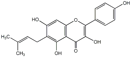92.59 | C00005000 | Noranhydroicaritin 8-Prenylkaempferol De-O-methylanhydroicaritin Desmethylicaritin 3,5,7-Trihydroxy-2-(4-hydroxyphenyl)-8-(3-methyl-2-butenyl)-4H-1-benzopyran-4-one |