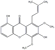 96.30 | C00035278 | CID is old! | 96.30 | C00036433 | 1-Hydroxy-3,5,6-trimethoxy-2-(3-methylbut-2-enyl)xanthone | ![]() |