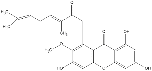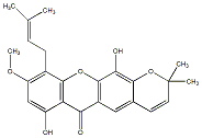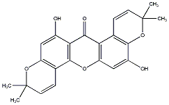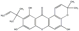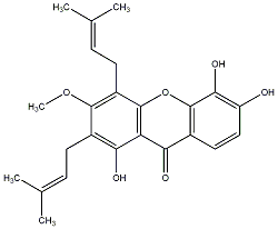 90.48 | C00033514 | 1,2-Dihydro-1,8,10-trihydroxy-2-(2-hydroxypropan-2-yl)-9-(3-methylbut-2-enyl)furo[3,2-a]-xanthen-11-one | ![]() |