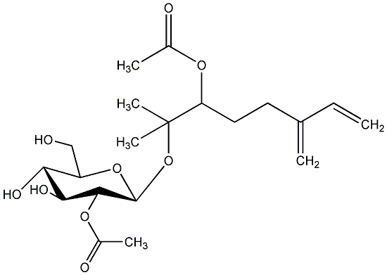 93.10 | C00021084 | 6-Acetoxy-7-hydroxymyrcene-7-O-beta-D-glucopyranoside-2'-O-acetate | ![]() |