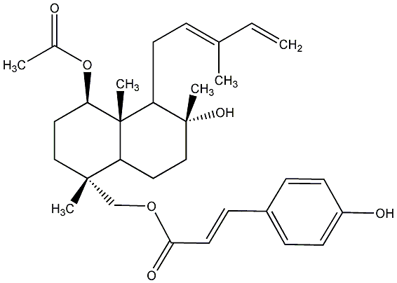81.82 | C00023257 | [1R-[1alpha(E),4beta,4abeta,5beta(E),6alpha,8aalpha]]-[4-(Acetyloxy)decahydro-6-hydroxy-1,4a,6-trimethyl-5-(3-methyl-2,4-pentadienyl)-1-naphthalenyl]methyl ester 3-(4-hydroxyphenyl)-2-propenoic acid | ![]() |