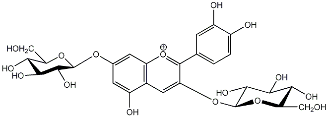 96.74 | C00006664 | Cyanidin 3-galactoside-5-glucoside | ![]() |