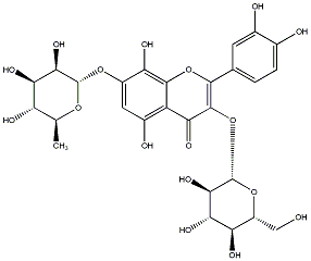 95.65 | C00005427 | Quercetin 3,7-O-beta-diglucopyranoside Quercetin 3,7-di-O-beta-D-glucopyranoside Quercetin 3,7-diglucoside |