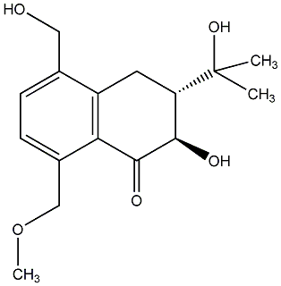 79.55 | C00013236 | Emmotin B (2R-trans)-3,4-Dihydro-2-hydroxy-5-(hydroxymethyl)-3-(1-hydroxy-1-methylethyl)-8-(methoxymethyl)-1(2H)-naphthalenone |