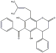 83.78 | C00005073 | (-)-8-(2-Carboxy-1-phenylethyl)-3,5,7-trihydroxyflavone delta-lactone (-)-9,10-Dihydro-3,5-dihydroxy-2,10-diphenyl-4H,8H-benzo[1,2-b:3,4-b']dipyran-4,8-dione |