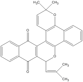 77.66 | C00013497 | Artelastochromene 3,8-Dihydroxy-11,11-dimethyl-13-(3-methyl-2-butenyl)-6-(2-methyl-1-propenyl)-6H,7H,11H-bis[1]benzopyrano[4,3-b:6',7'-e]pyran-7-one |