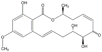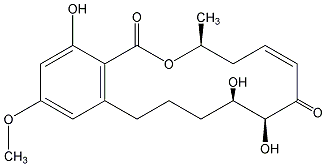 92.31 | C00015458 | [3S-(3R*,8R*,9R*,11E)]-3,4,5,6,9,10-Hexahydro-8,9,16-trihydroxy-14-methoxy-3-methyl-1H-2-benzoxacyclotetradecin-1,7(8H)-dione L 783278 LL-Z 1640-1 |