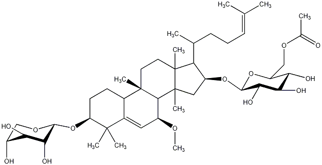 83.20 | C00023916 | Hebevinoside I 3beta,16beta-Dihydroxy-7beta-methoxycucurbita-5,24-diene-3-O-beta-D-xylopyranoside-16-O-(6-O-acetyl)-beta-D-glucopyranoside |