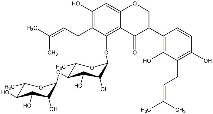 78.30 | C00019261 | 5,7,2',4'-Tetrahydroxy-6,3'-diprenylisoflavone 5-O-(4''-rhamnosylrhamnoside) | ![]() |