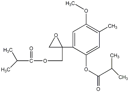 86.27 | C00010833 | 2-Methyl-4-methoxy-5-methyl-2-[2-[(2-methyl-1-oxopropoxy)methyl]oxiranyl]phenyl ester | ![]() |
