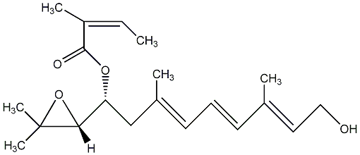 85.71 | C00011419 | [R-[R*,R*-(Z,E,E,E)]]-1-(3,3-Dimethyloxiranyl)-9-hydroxy-3,7-dimethyl-3,5,7-nonatrienyl ester 2-methyl-2-butenoic acid | ![]() |