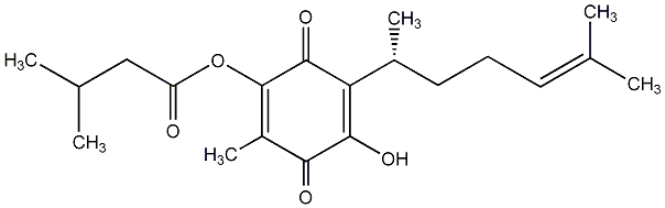 87.23 | C00011663 | (R)-5-(1,5-dimethyl-4-hexenyl)-4-hydroxy-2-methyl-3,6-dioxo-1,4-cyclohexadien-1-yl ester 3-methylbutanoic acid | ![]() |